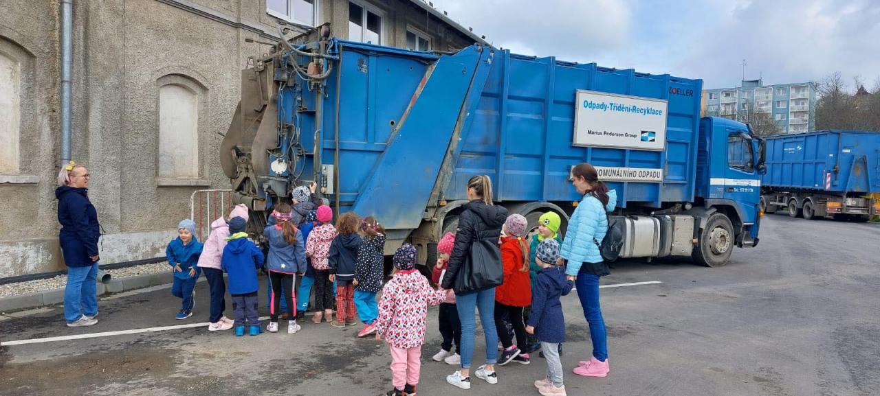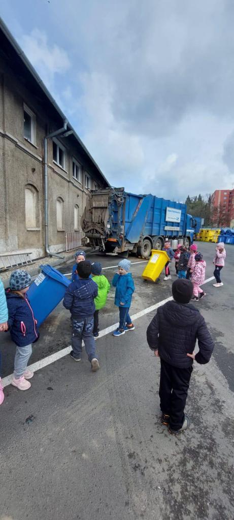 V úterý 25.4.2023 navštívila třída Ježečků sběrný dvůr ve Šternberku. Děti si mohly vyzkoušet jak se stojí popelářům na stupačce popelářského auta, zjistily kam se vozí tříděný odpad a co se s ním děje.