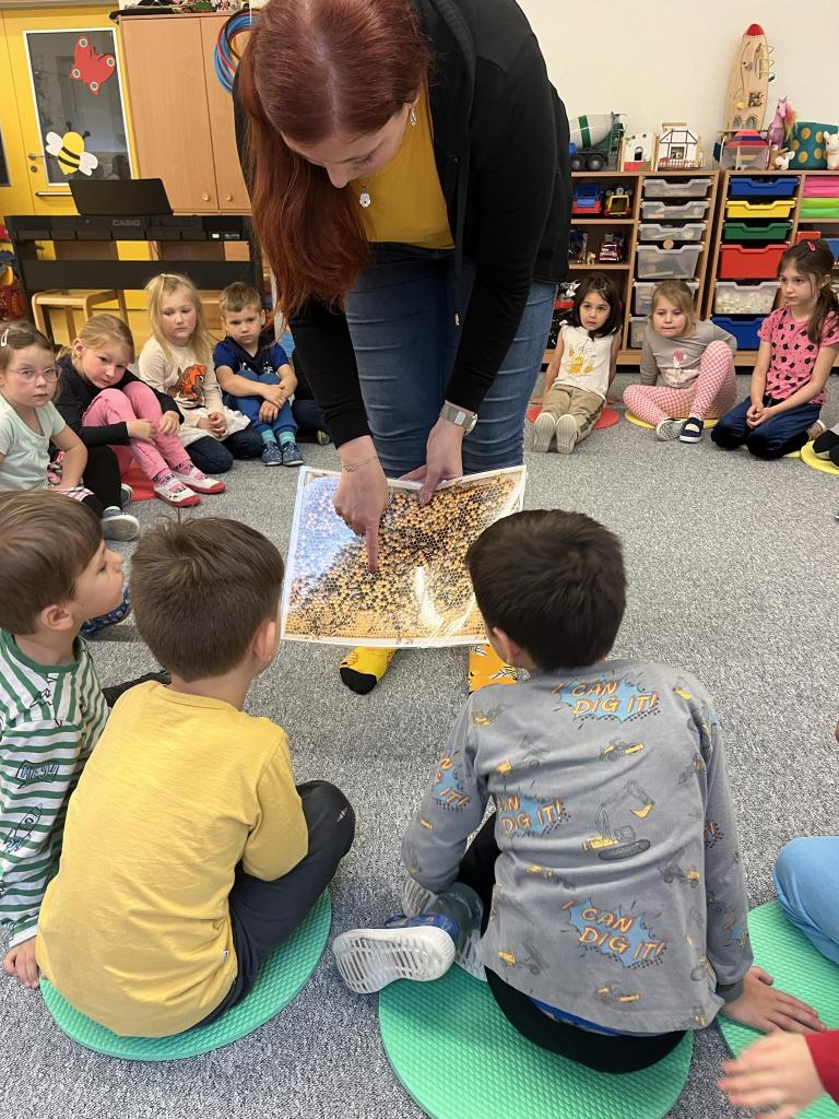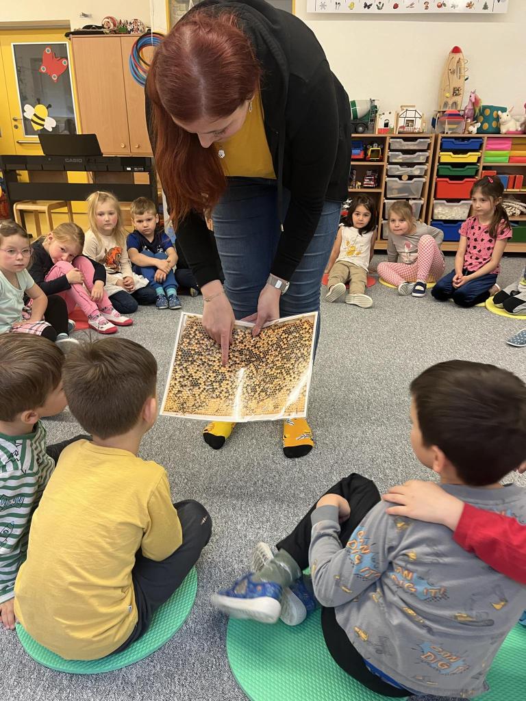 Dne 24.4.2024 navštívila třídu Ježečků včelařka slečna Czabeová, která dětem předala zajímavé informace o chovu včel.
