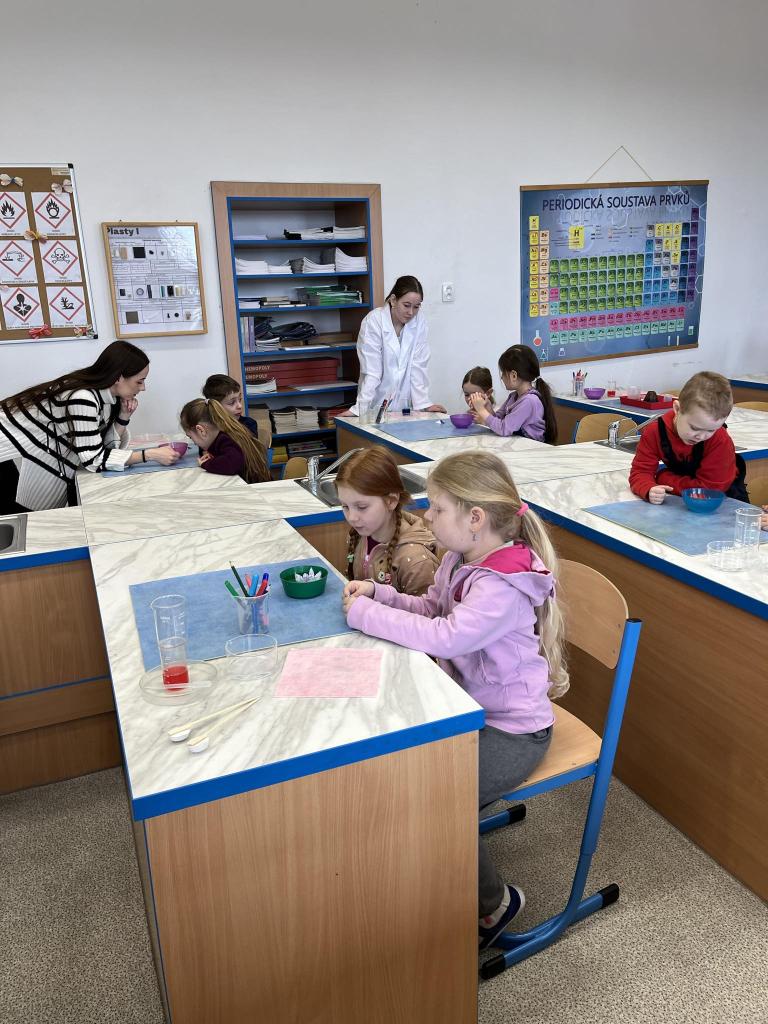 V úterý 19.3.2024 navštívili předškoláci ze třídy Ježečků a Medvídků základní školu náměstí Svobody ve Šternberku. Zde je čekal připravený bohatý program. Děti si mohly vyzkoušet například chemické pokusy, nebo matematickou soutěž.