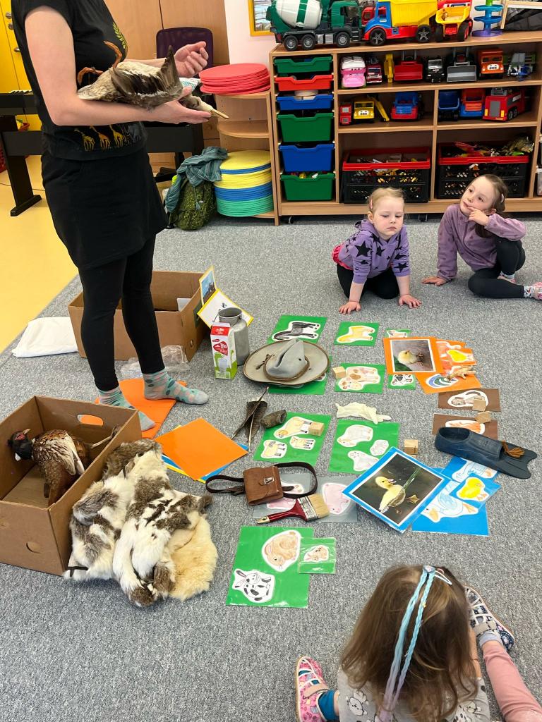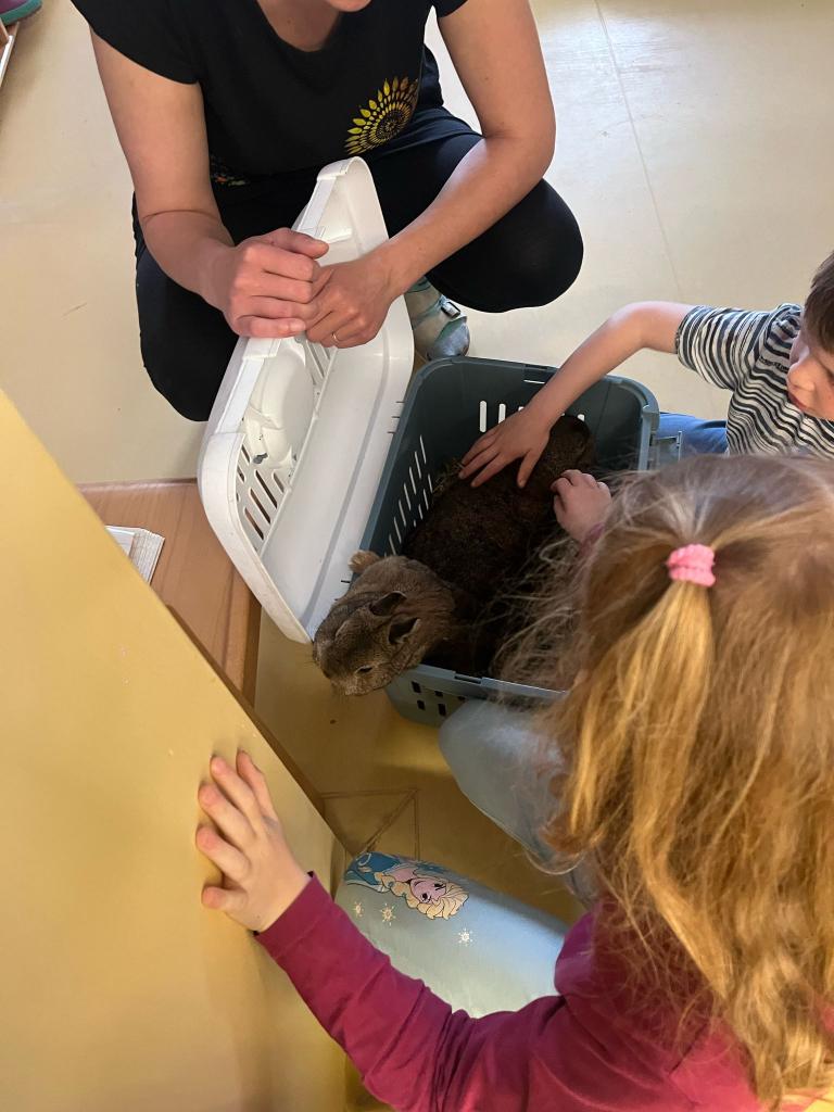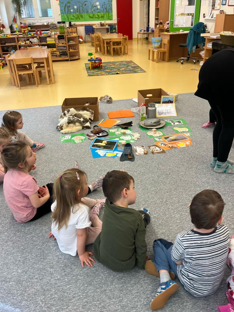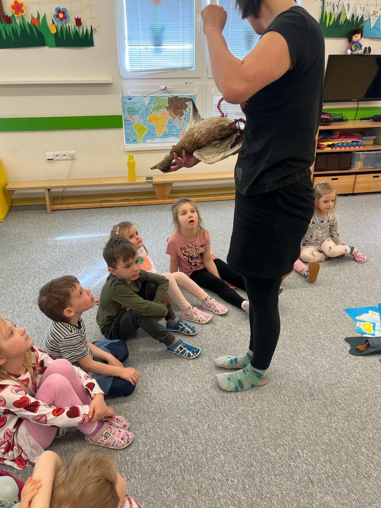 V úterý 15.4.2025 navštívila třídu Ježečků Tereza Pacovská. Tentokrát si Tereza připravila program s názvem "S farmou kolem světa". Pro děti měla připravený výtvarný i pohybový program, k náhledu měla vycpaná i živá zvířata.