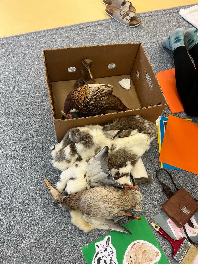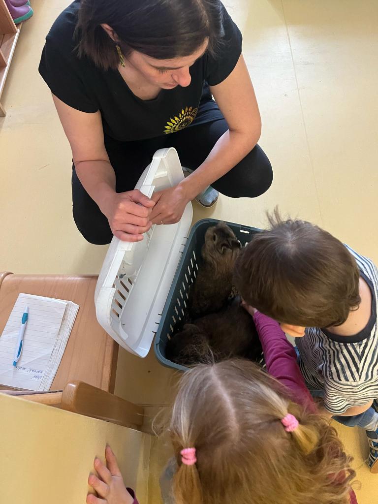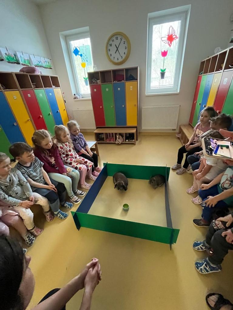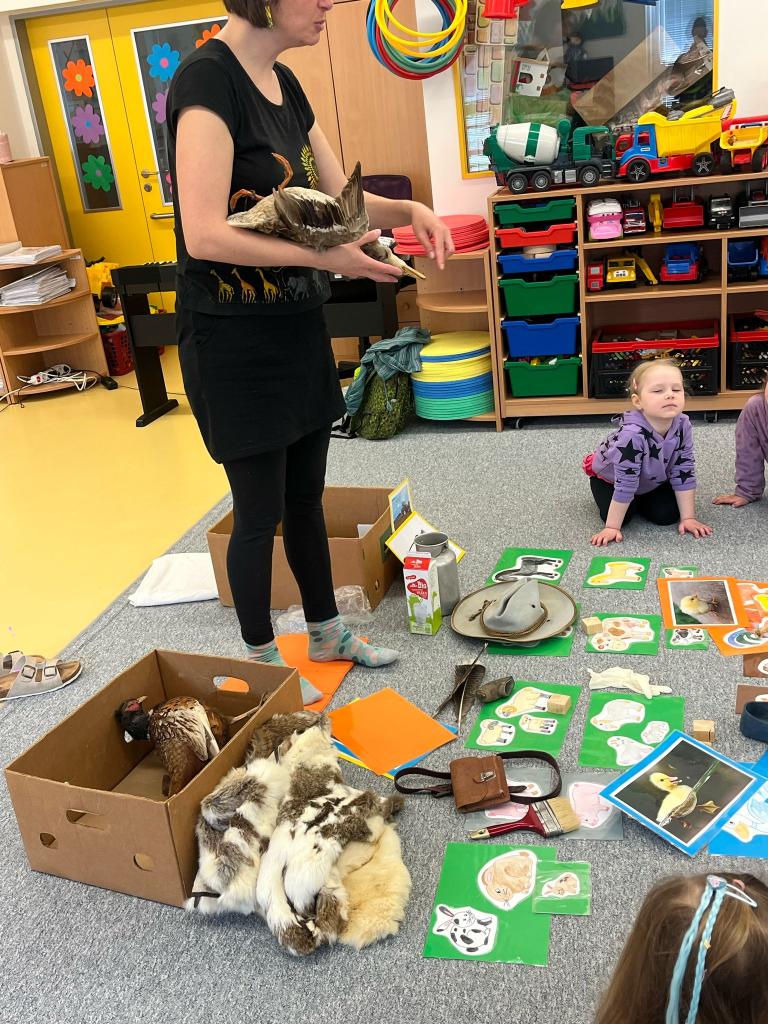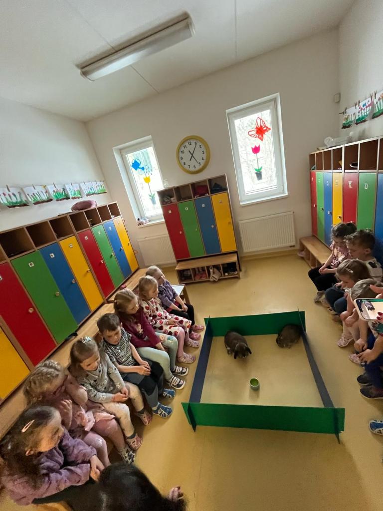 V úterý 15.4.2025 navštívila třídu Ježečků Tereza Pacovská. Tentokrát si Tereza připravila program s názvem "S farmou kolem světa". Pro děti měla připravený výtvarný i pohybový program, k náhledu měla vycpaná i živá zvířata.