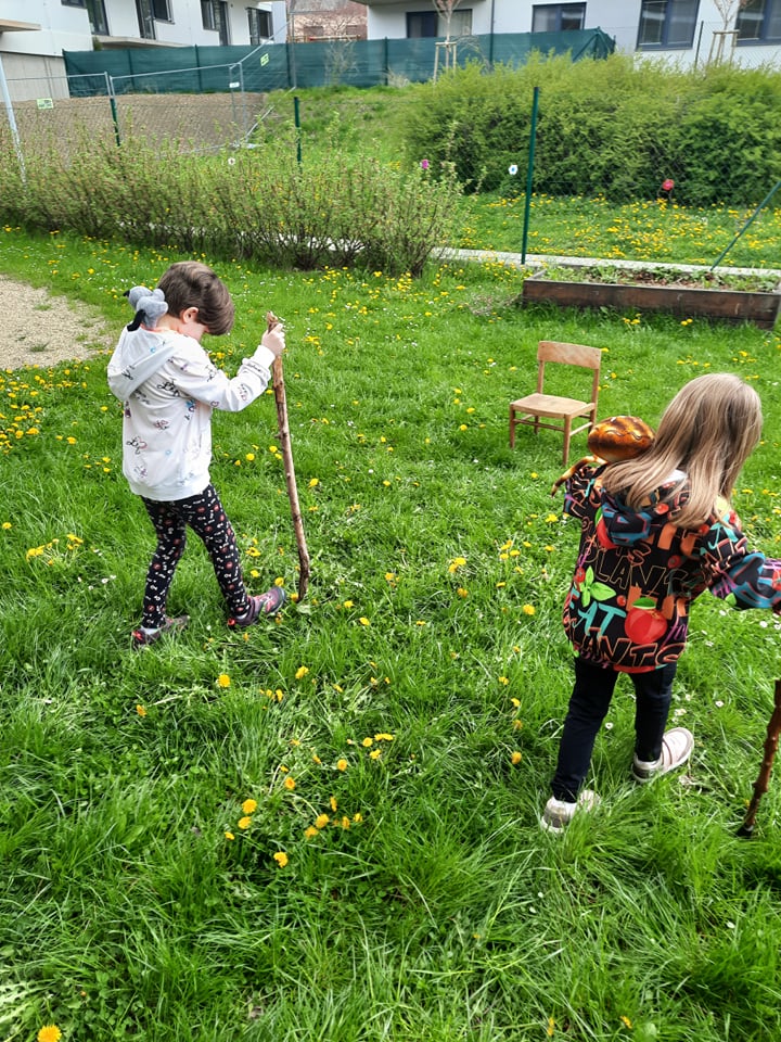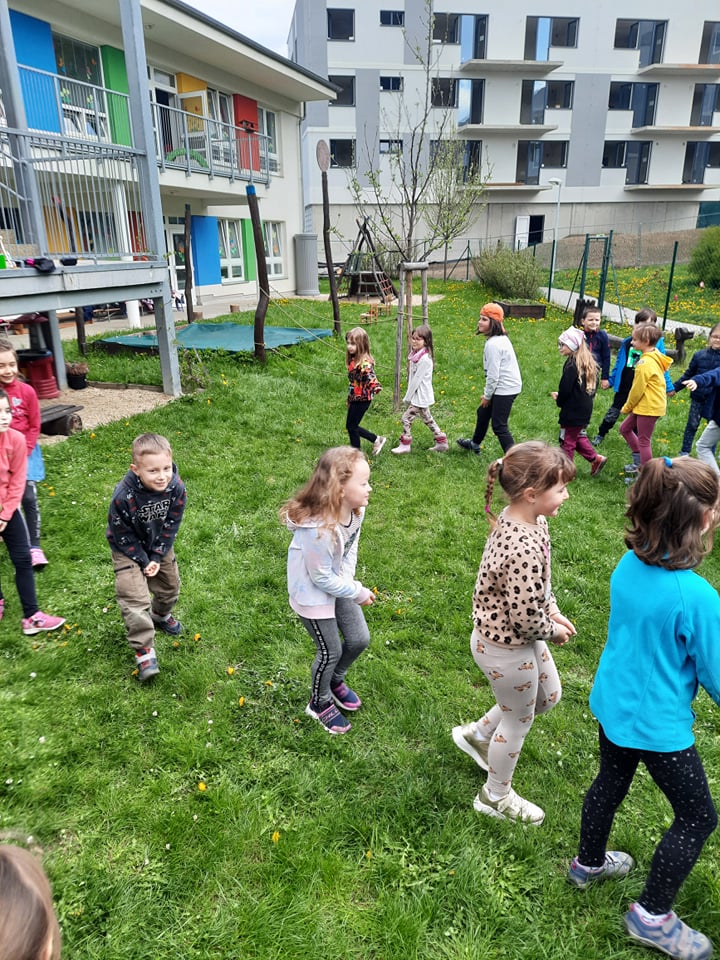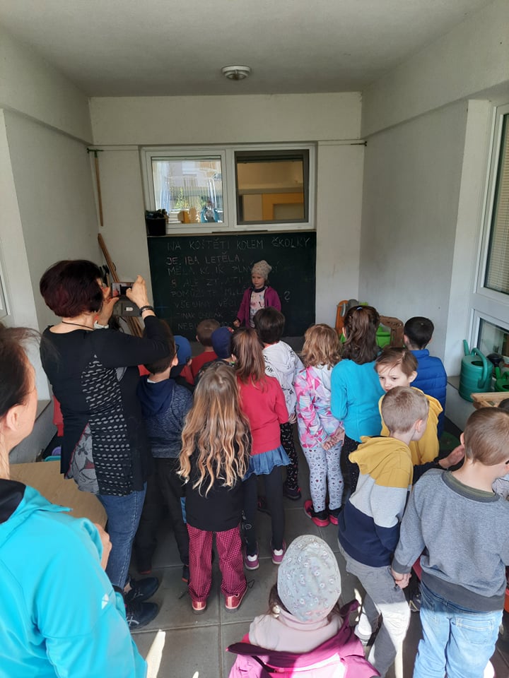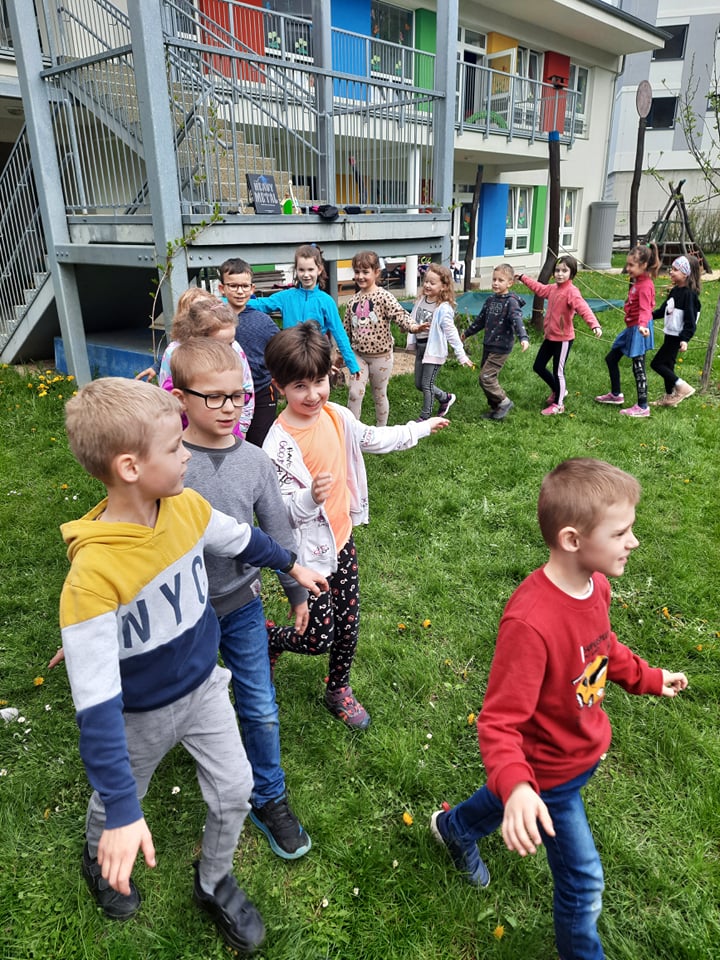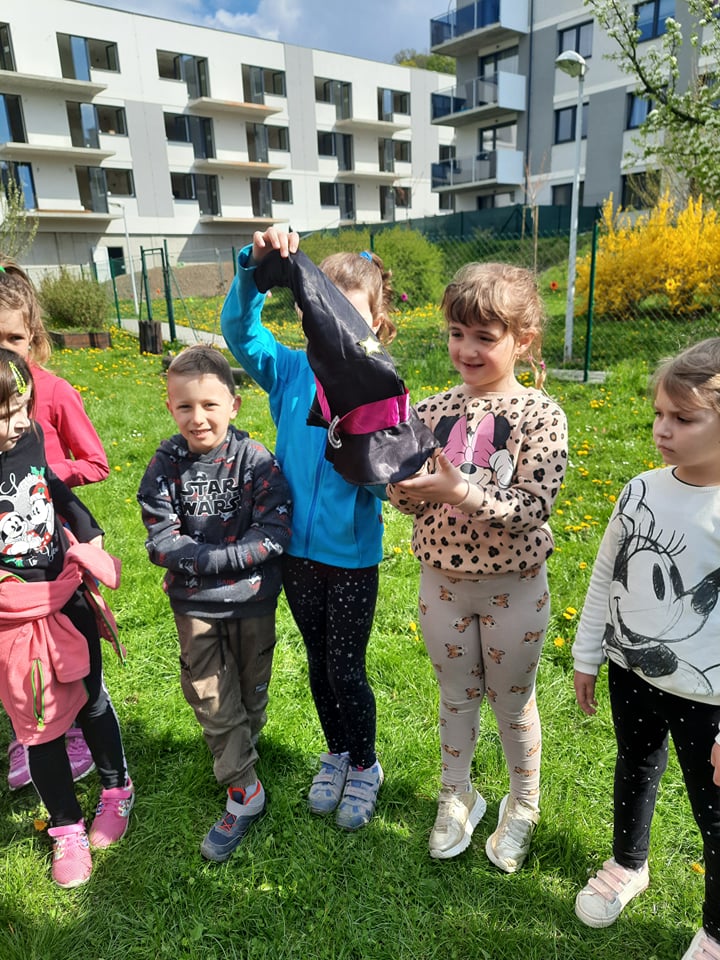 Předškoláci ze třídy Medvídků a Ježečků si společně s dětmi ze třídy 1.B. zasoutezili na školní zahradě. Pomáhali čarodějnici hledat ztracené věci, tancovali a zpívali píseň ,,Pět čarodějnic"