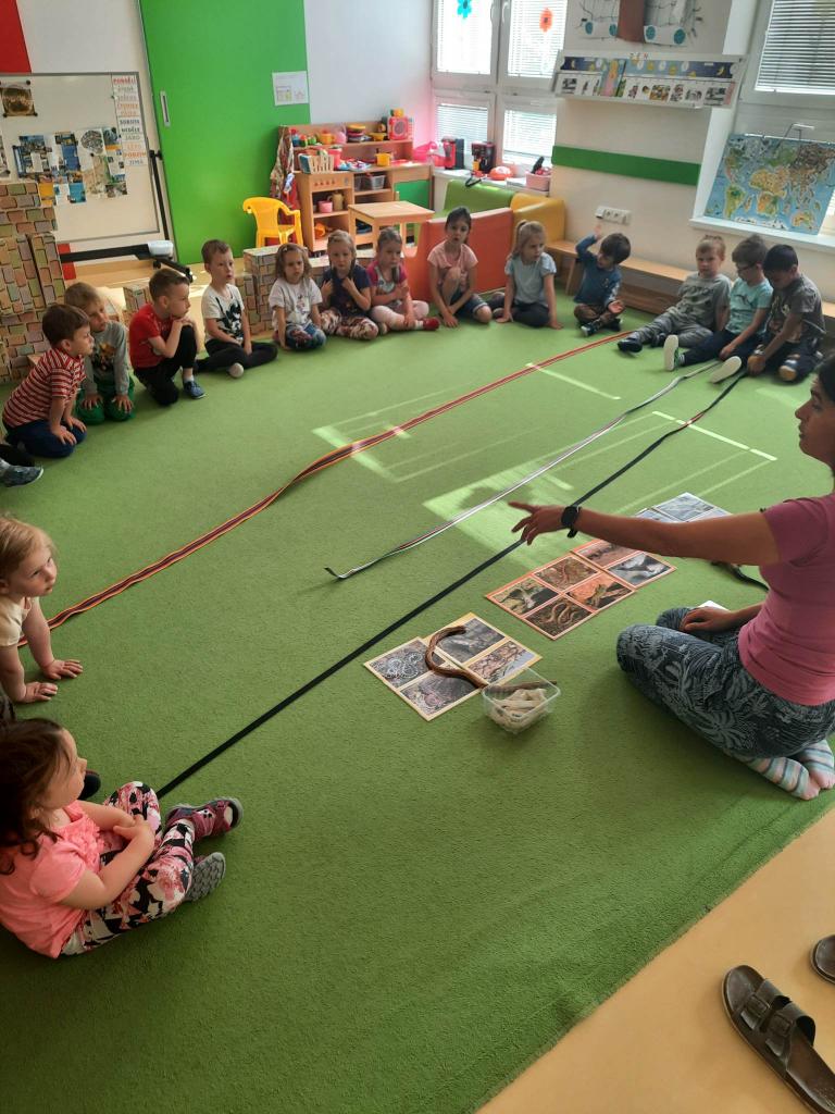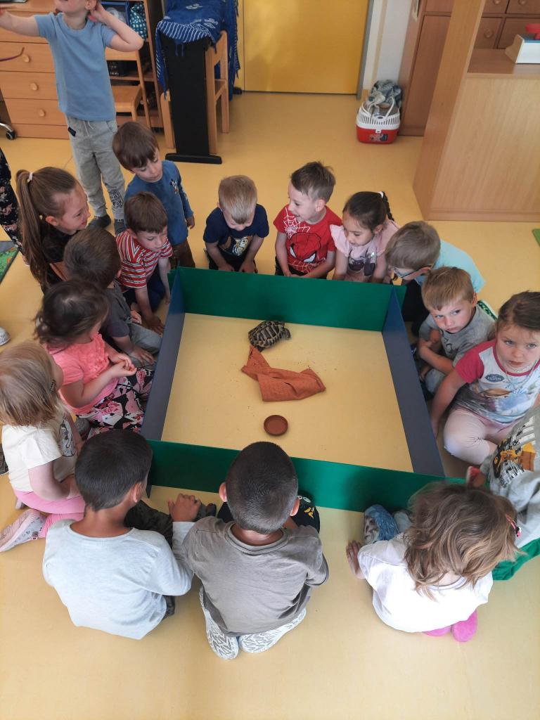 Již po několikáté přijela do školky lektorka Tereza Pacovská, která má vždy připravený program na téma přírody nebo ekologie. Tentokrát bylo zaměření na želvy a jiné plazy. Nakonec se děti mohly s živou želvičkou seznámit a pohladit si ji.