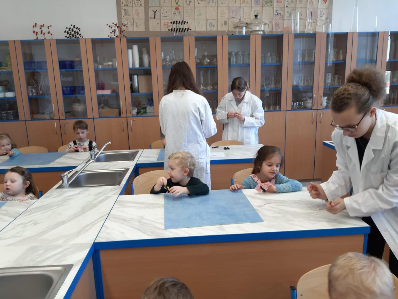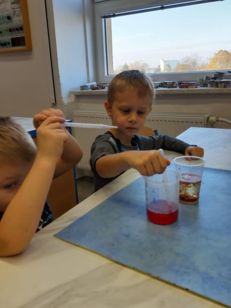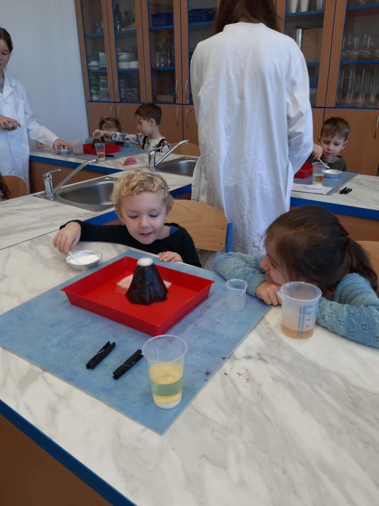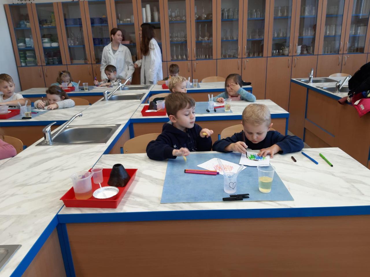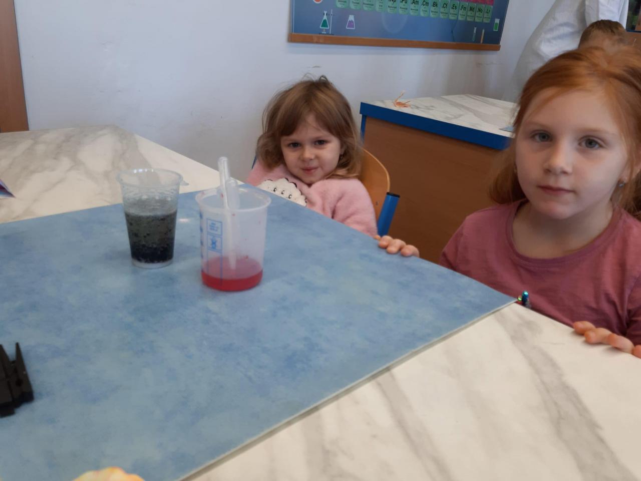 Dne 29.11. třida medvídků byla pozvaná paní uč.Novotnou na ukázku pokusů do učebny chemie na základní školu nám.Svobody.