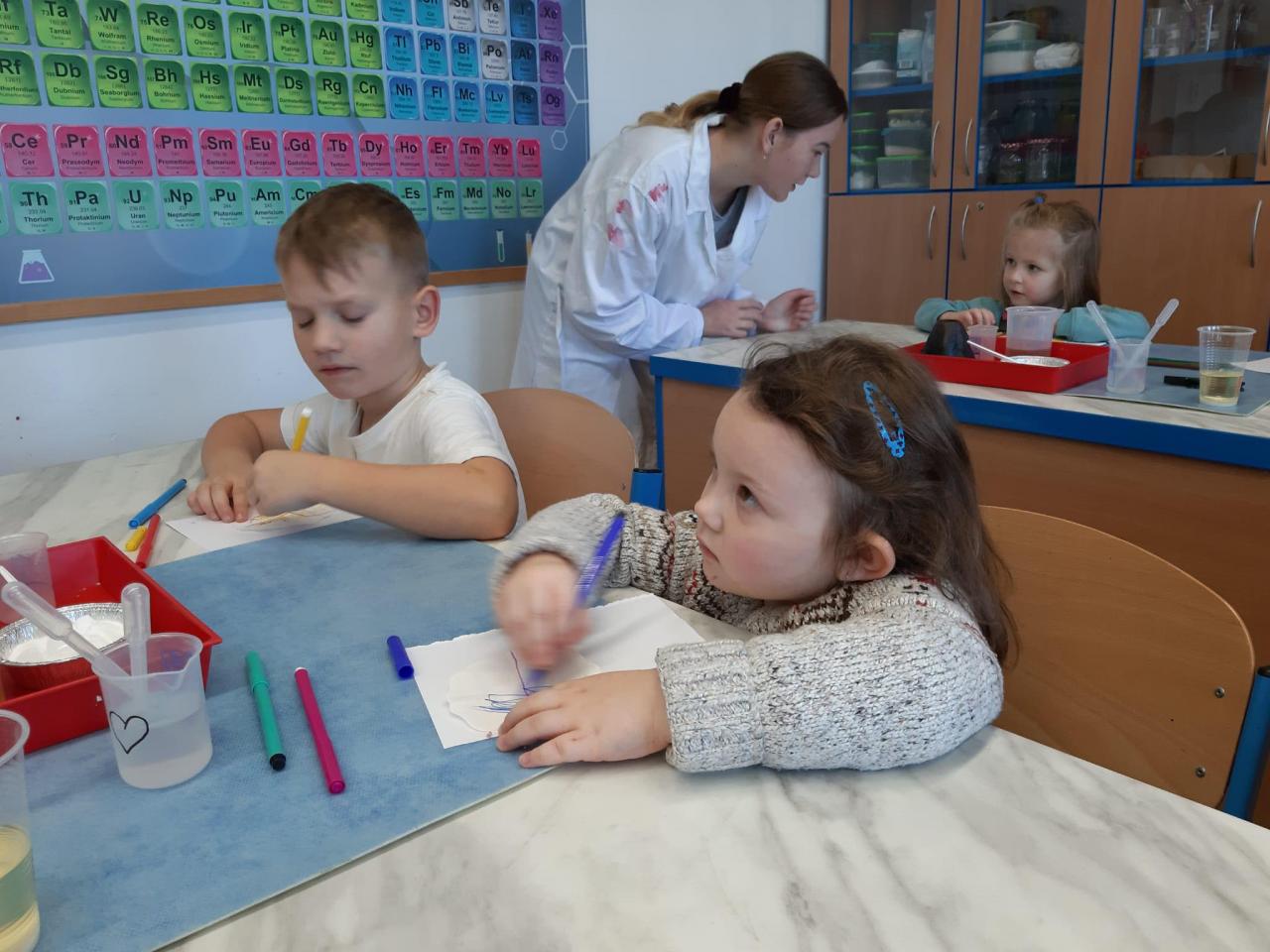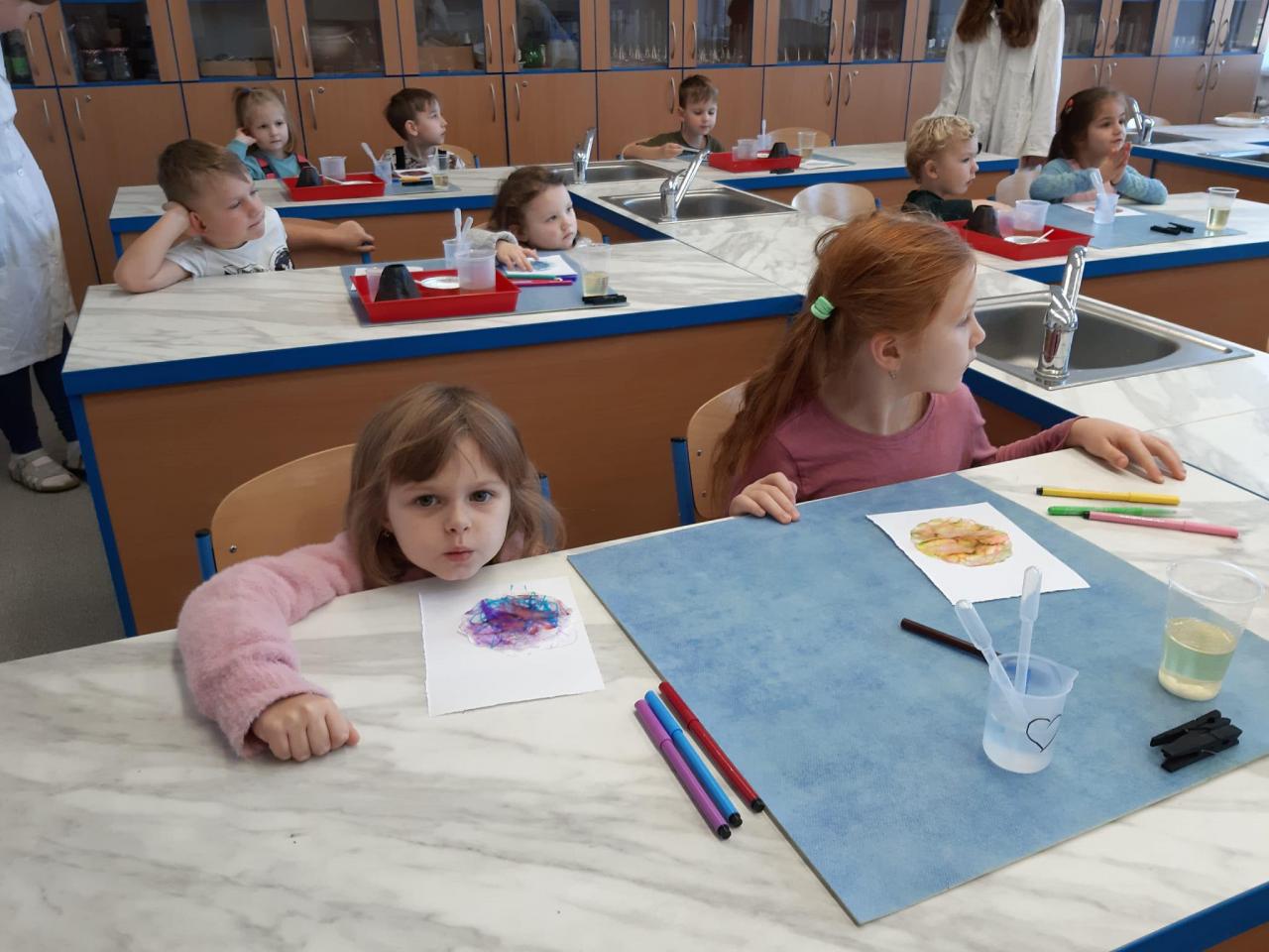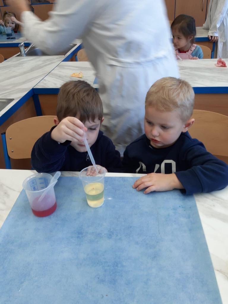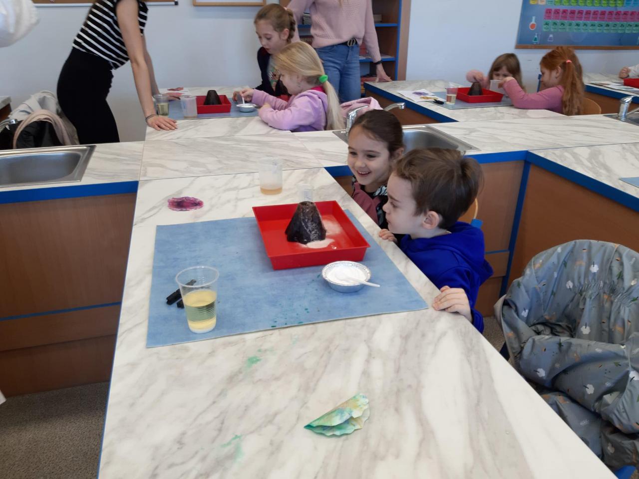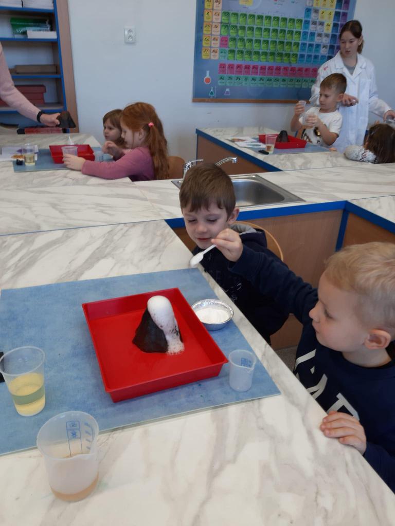 Dne 29.11. třida medvídků byla pozvaná paní uč.Novotnou na ukázku pokusů do učebny chemie na základní školu nám.Svobody.