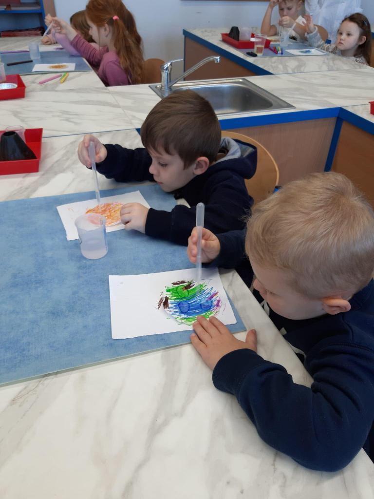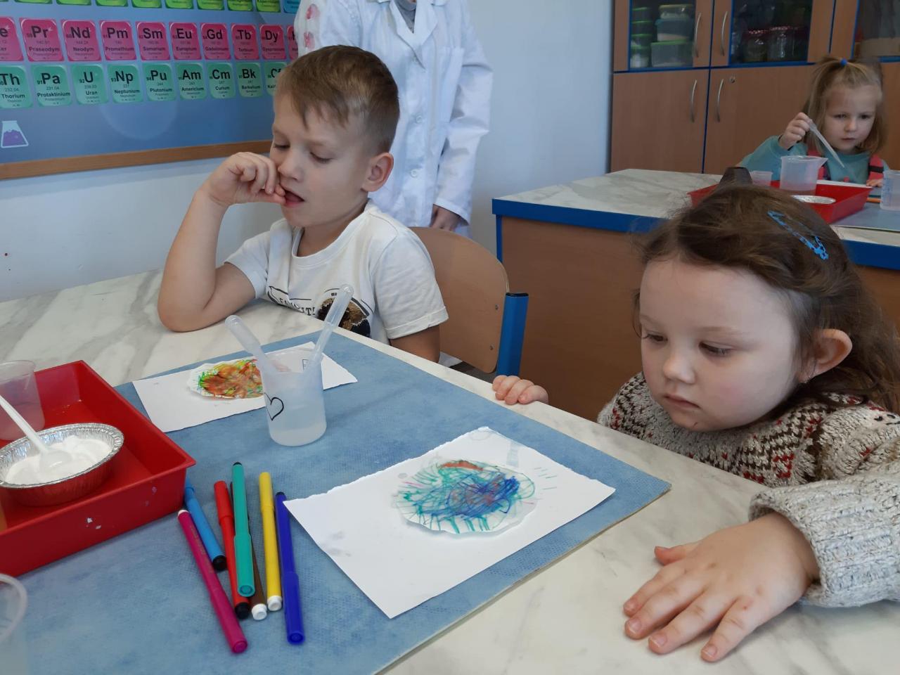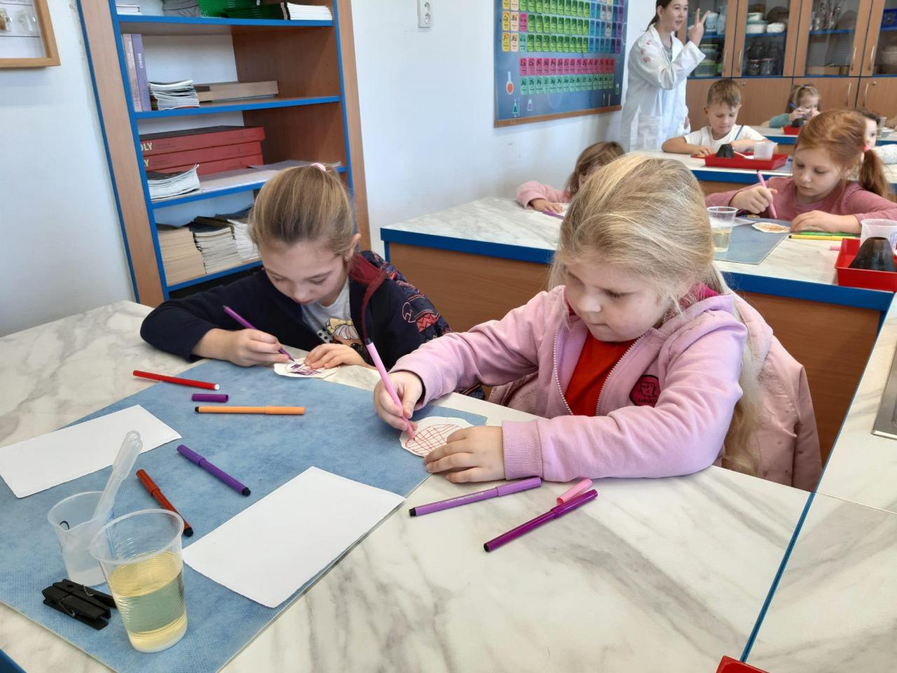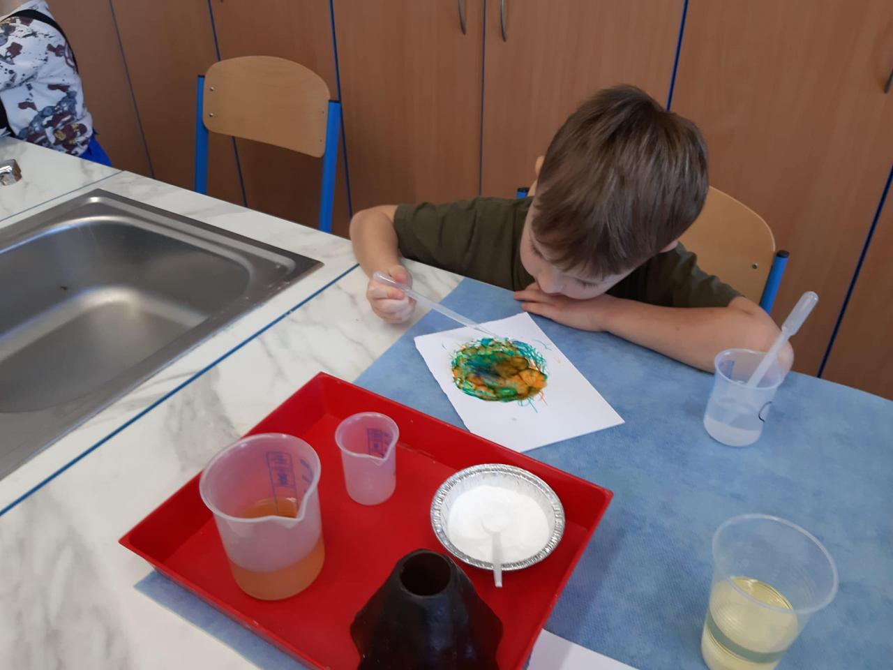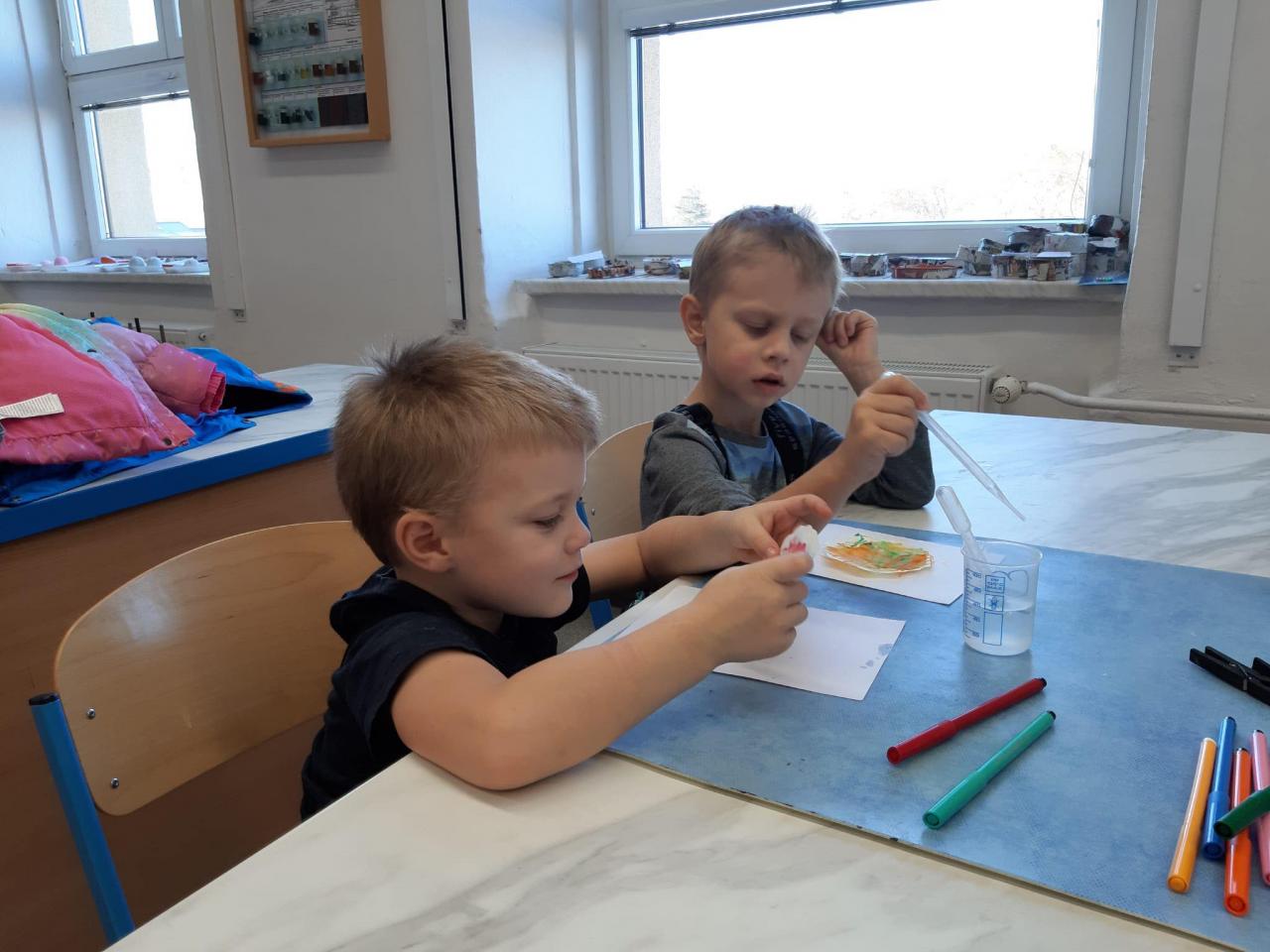 Dne 29.11. třida medvídků byla pozvaná paní uč.Novotnou na ukázku pokusů do učebny chemie na základní školu nám.Svobody.