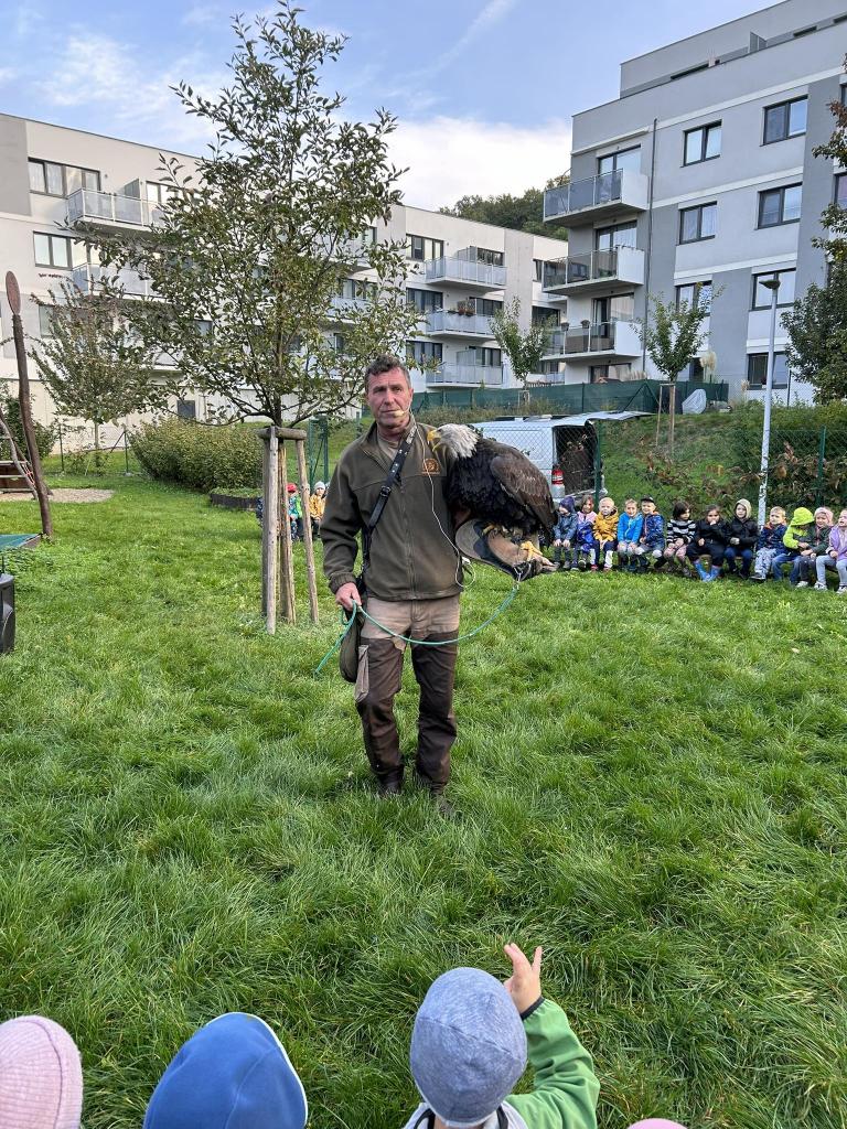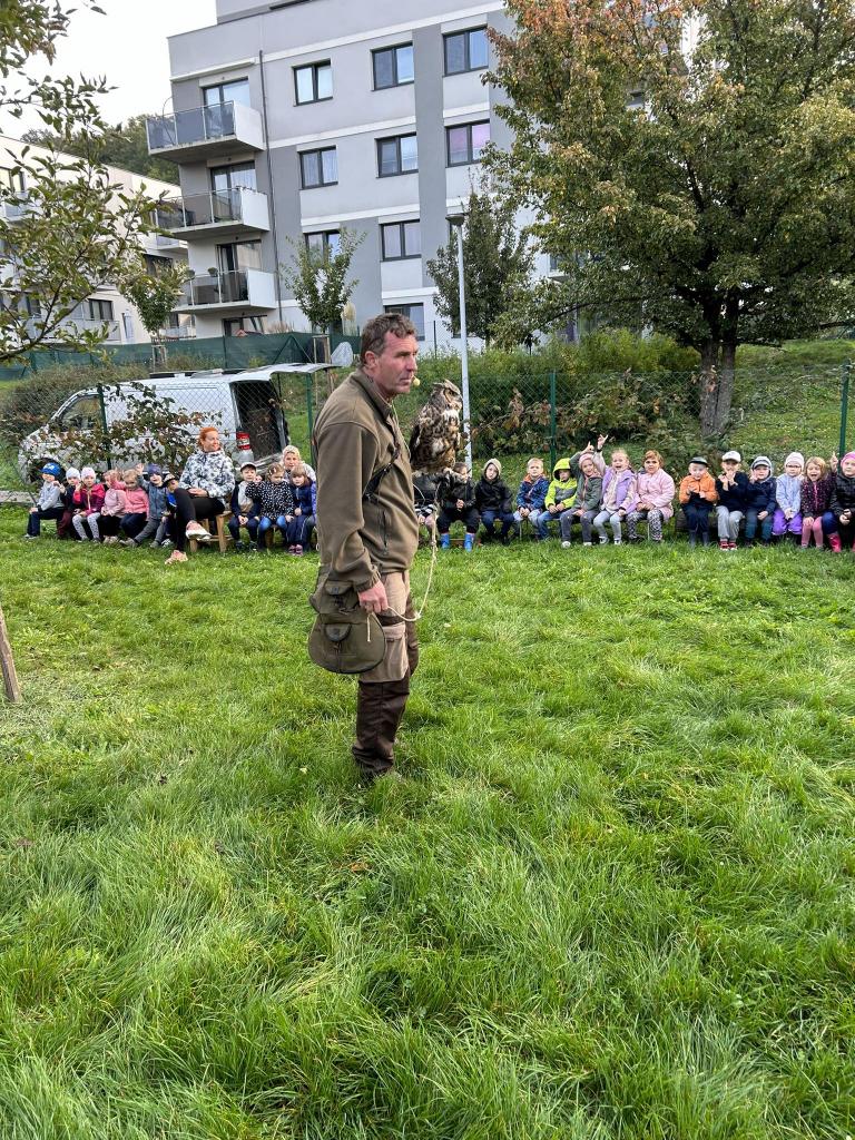 Ve čtvrtek 12.10.2023 proběhla v naší Mš ukázka dravců. Prohléhnou si děti mohly například Sovu pálenou, nebo samotného Orla bělohlavého.