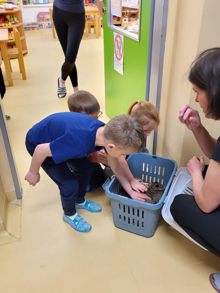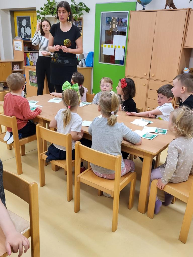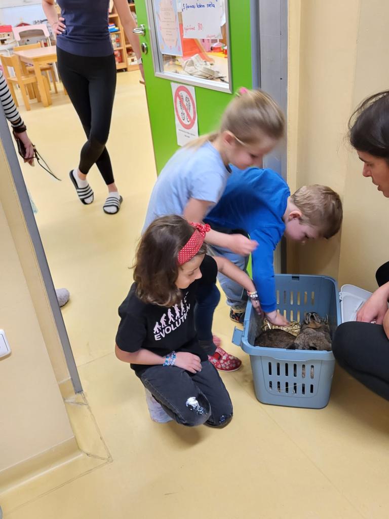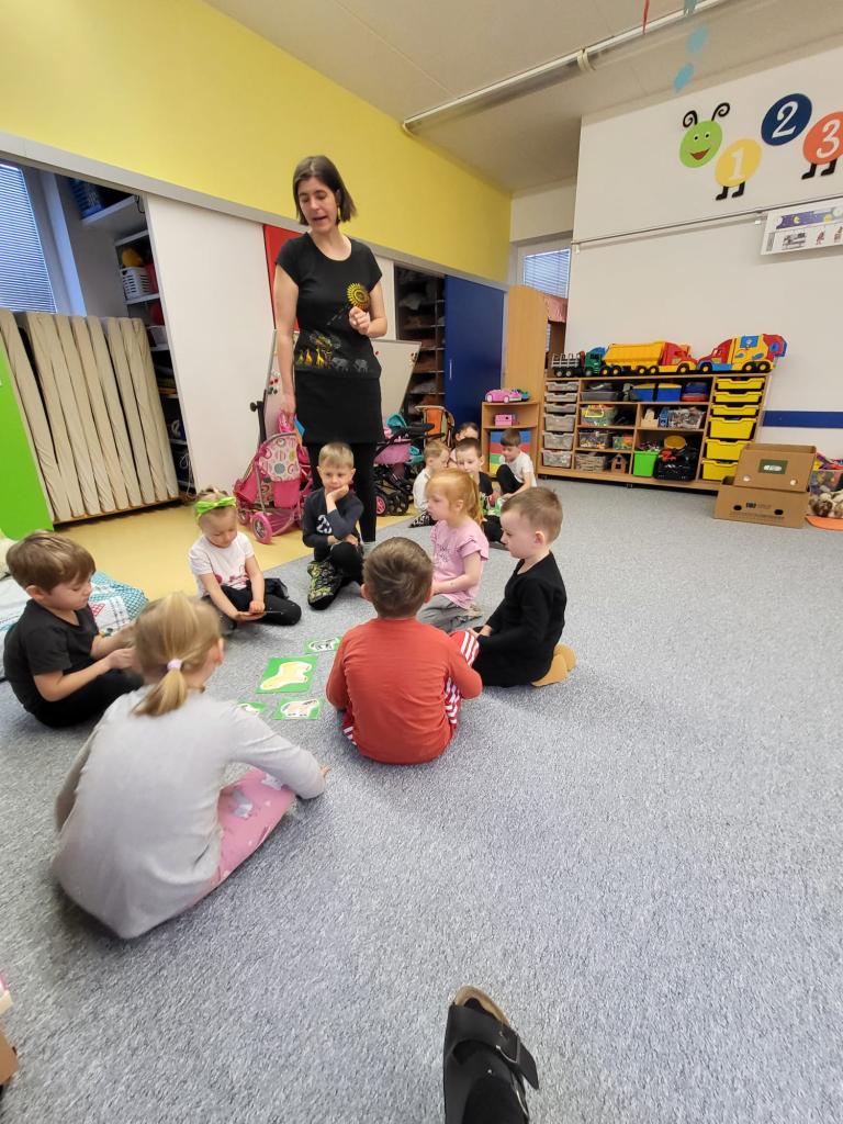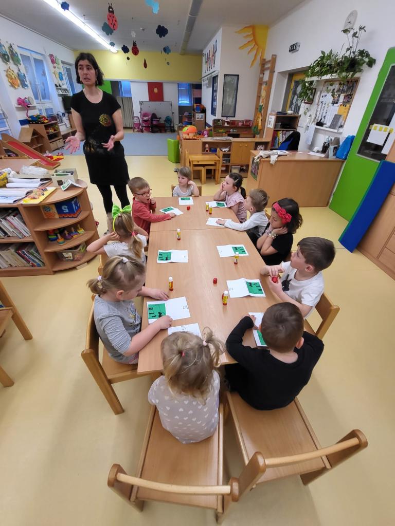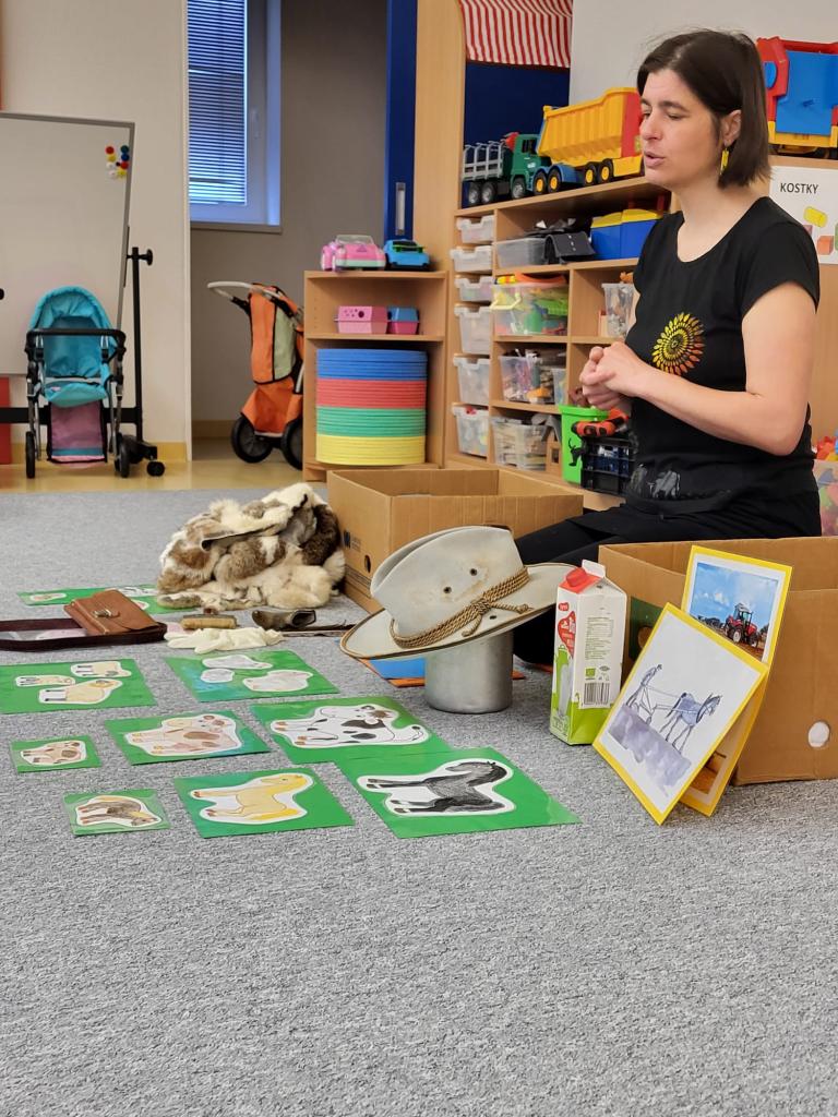 V úterý 15.4.2025 navštívila třídu Medvídků Tereza Pacovská. Tentokrát si Tereza připravila program s názvem "S farmou kolem světa". Pro děti měla připravený výtvarný i pohybový program, k náhledu měla vycpaná i živá zvířata.