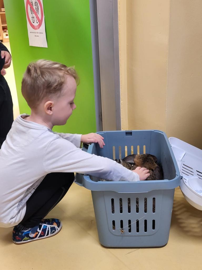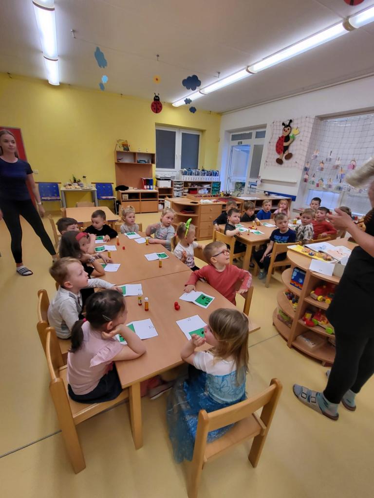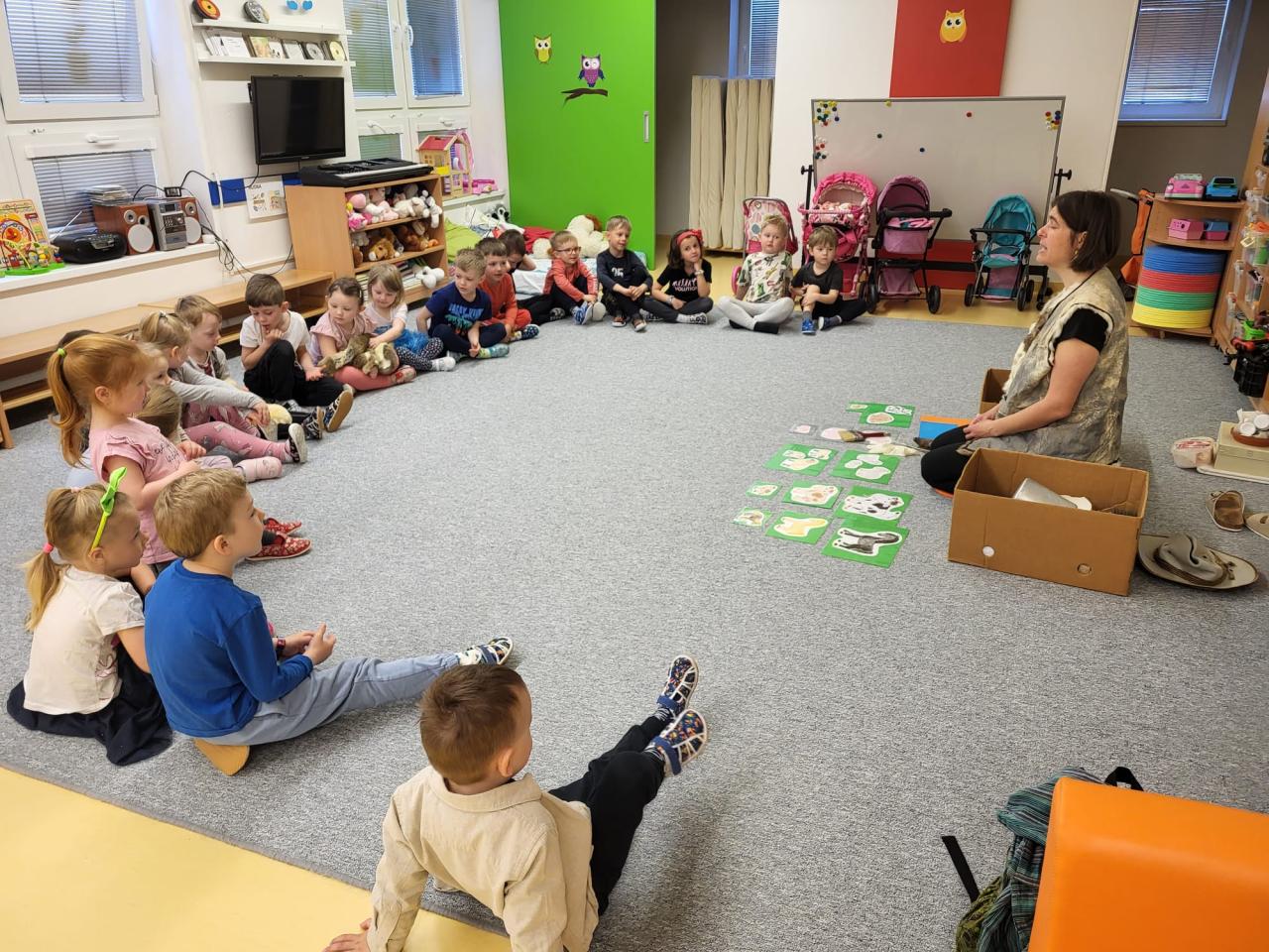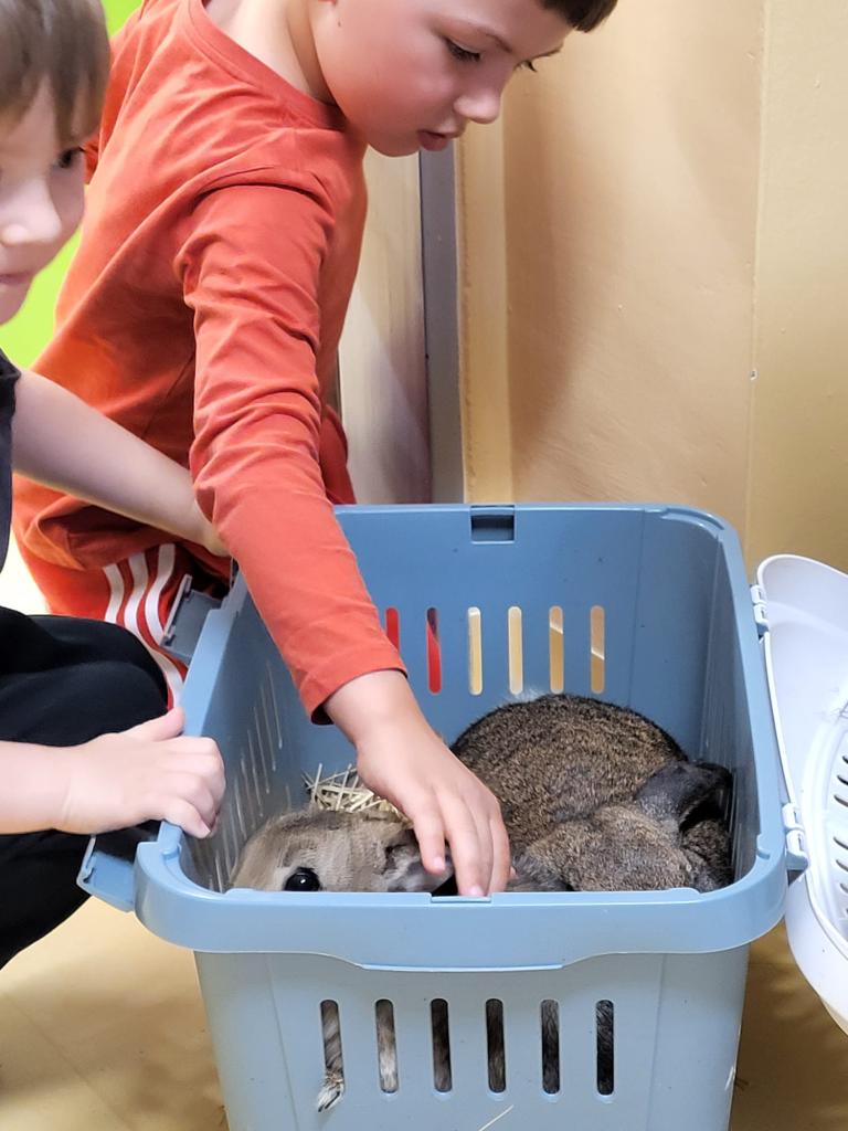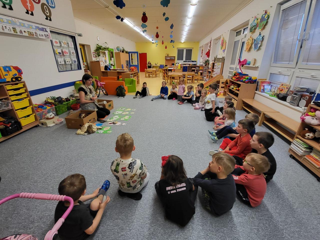V úterý 15.4.2025 navštívila třídu Medvídků Tereza Pacovská. Tentokrát si Tereza připravila program s názvem "S farmou kolem světa". Pro děti měla připravený výtvarný i pohybový program, k náhledu měla vycpaná i živá zvířata.