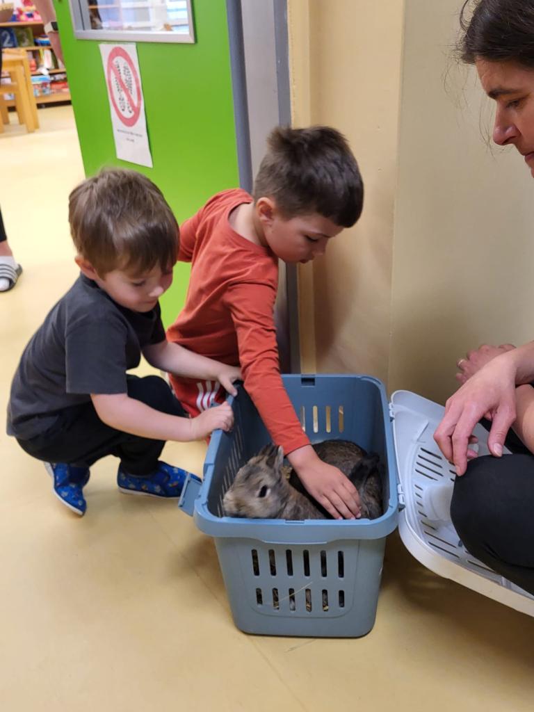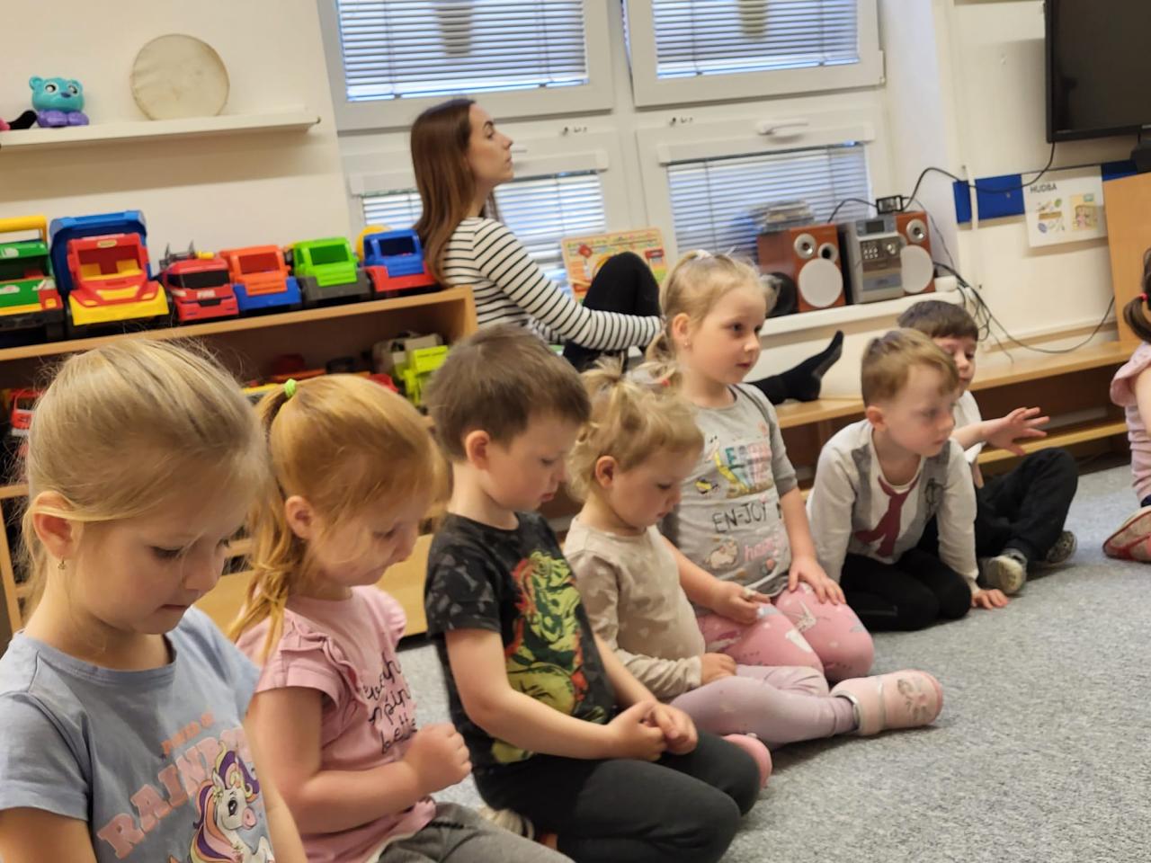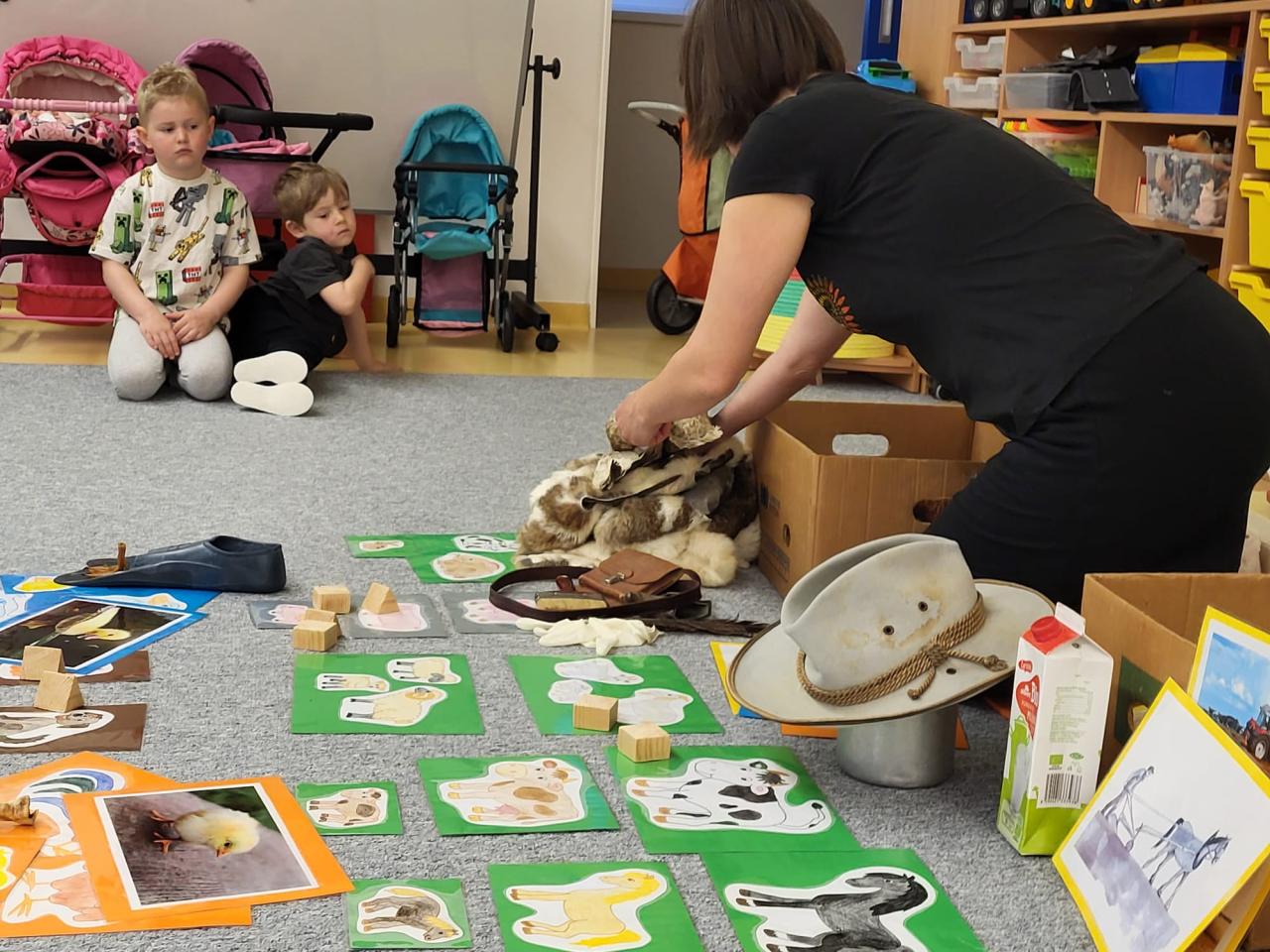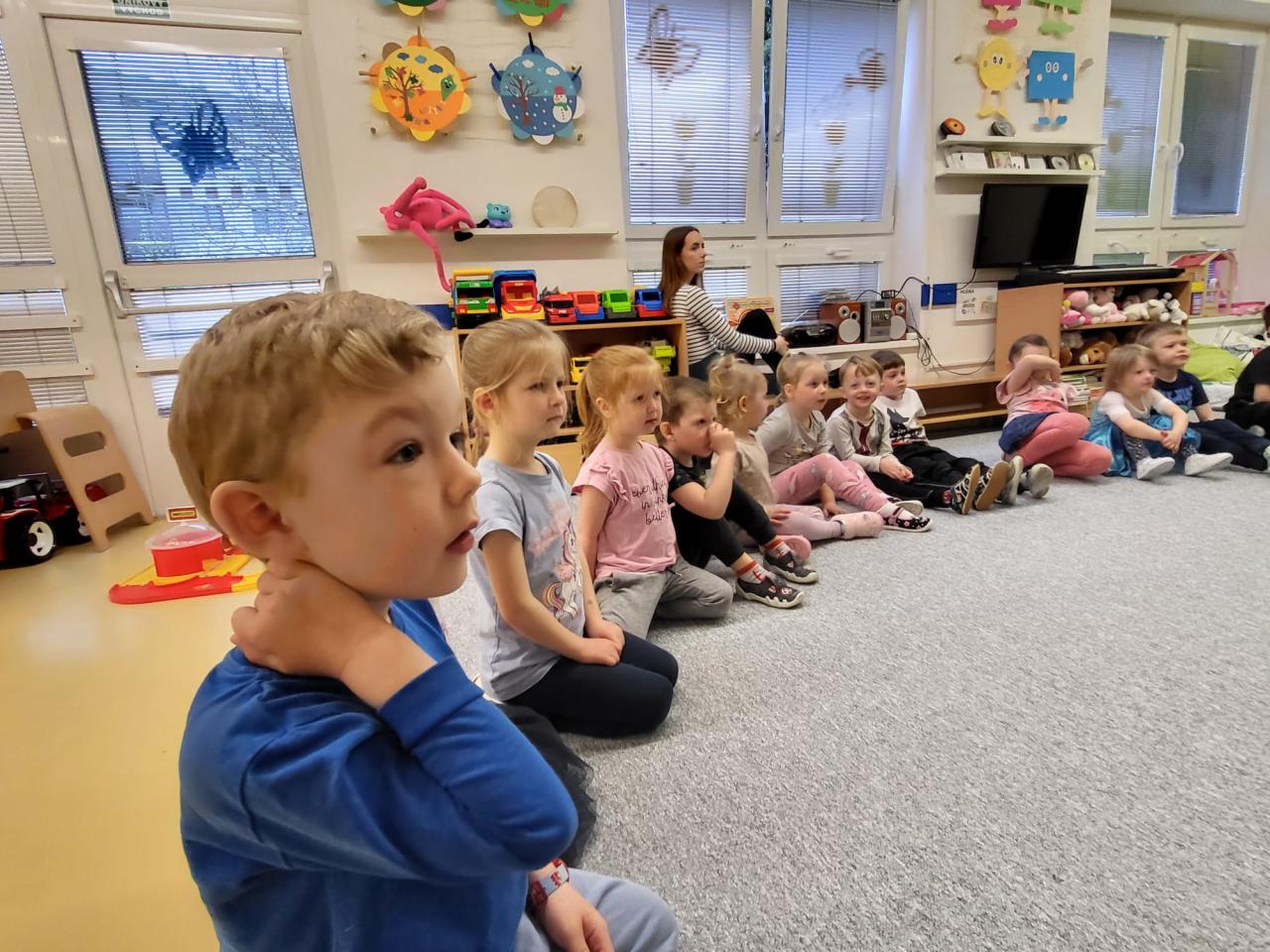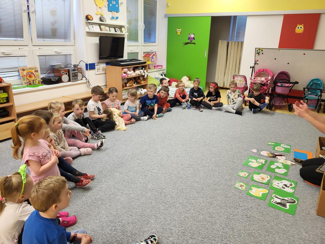 V úterý 15.4.2025 navštívila třídu Medvídků Tereza Pacovská. Tentokrát si Tereza připravila program s názvem "S farmou kolem světa". Pro děti měla připravený výtvarný i pohybový program, k náhledu měla vycpaná i živá zvířata.