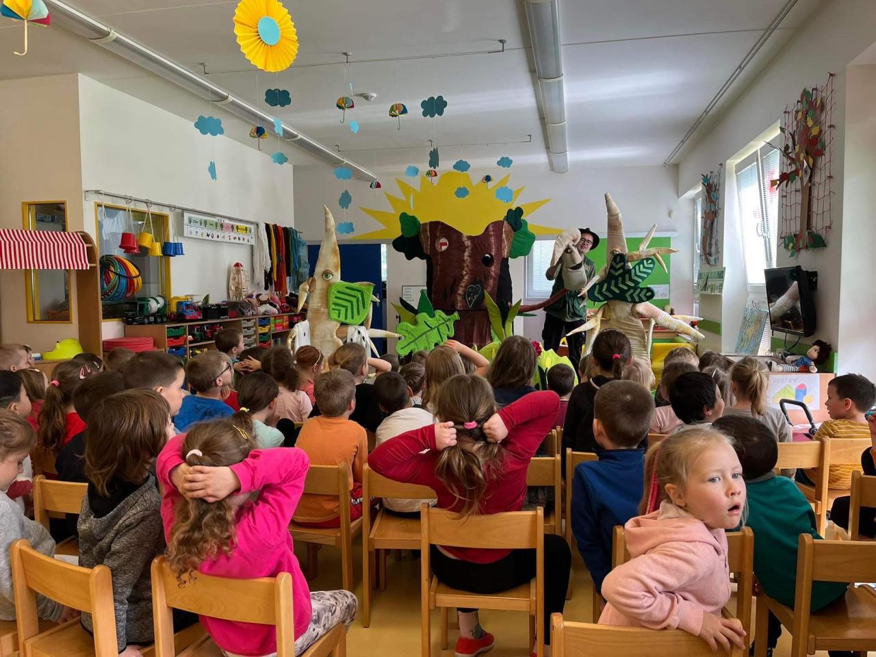 V úterý 18.5.2023 naší školku navštívilo divadlo Plyšového medvídka s představením, které nese název "Jak si stromy povídají"