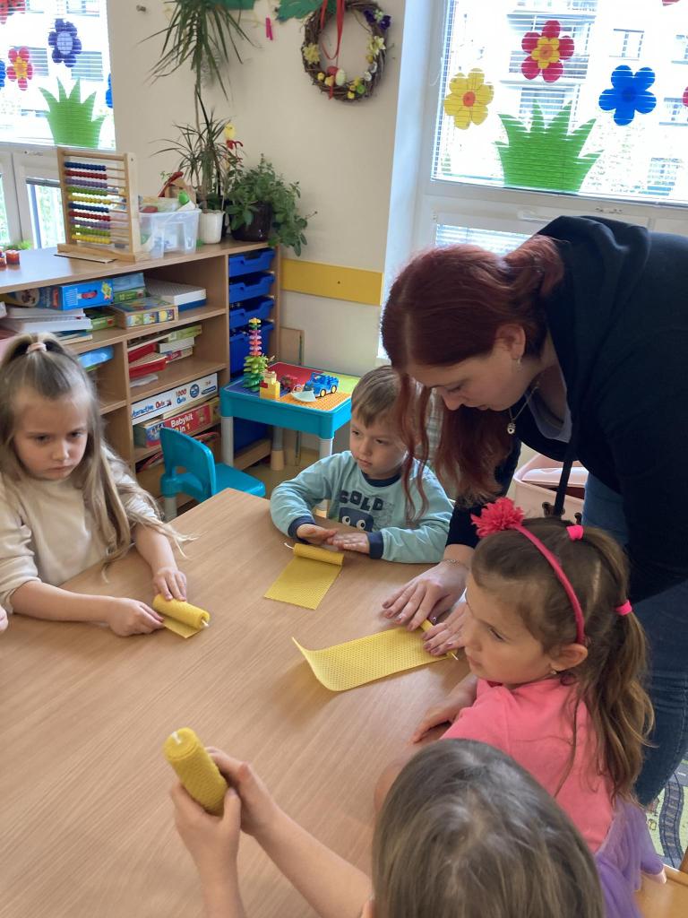 Třídu Soviček navštívila včelařka slečna Czabeová, která dětem předala zajímavosti o informace o chovu včel.