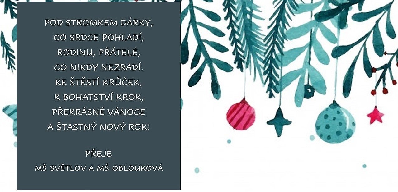 Celý kolektiv MŠ Světlov a MŠ Oblouková Vám přeje příjemné prožití vánočních svátků a mnoho úspěchů v novém roce.